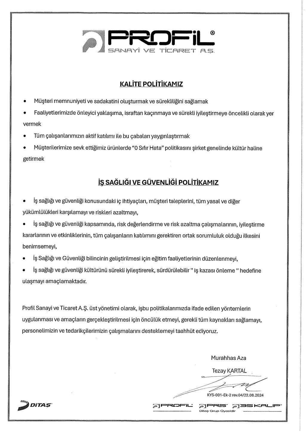 Biz, (PROFİL A.Ş.) olarak; müşterilerimiz, potansiyel müşterilerimiz, çalışan adaylarımız, çalışanlarımız, şirket yetkililerimiz, ziyaretçilerimiz, tedarikçiler, iş ortakları, işbirliği içinde olduğumuz kurumların çalışanları, hissedarları ve yetkilileri ile 3. kişiler ile ilgili uhdemizde bulunan kişisel verilerinin Türkiye Cumhuriyeti Anayasası, ülkemizin tarafı olduğu uluslararası sözleşmeler ile 6698 sayılı Kişisel Verilerin Korunması Kanunu (“KVKK”) başta olmak üzere ilgili mevzuat çerçevesinde; güvence altına alınması, işlenmesi ve imhası konusuna hassasiyetle yaklaşmaktayız.