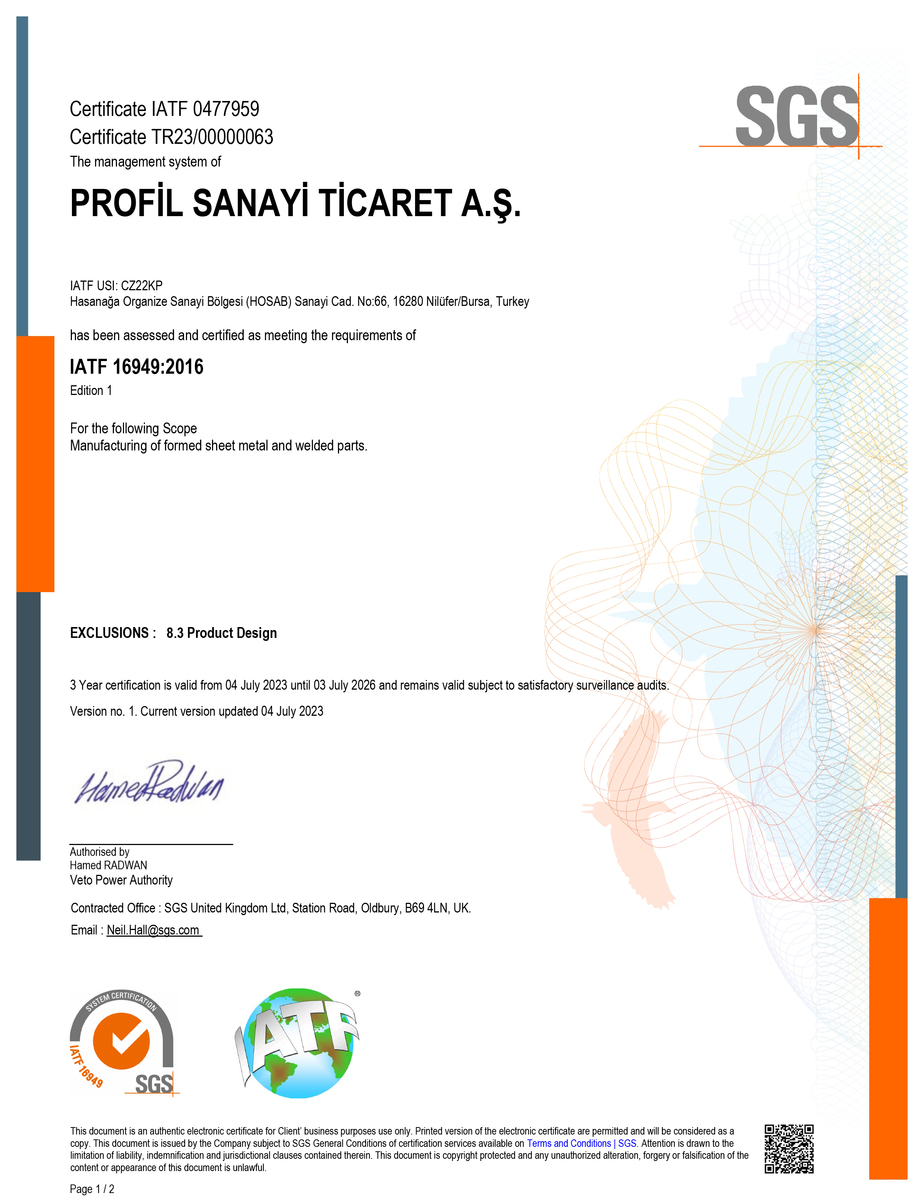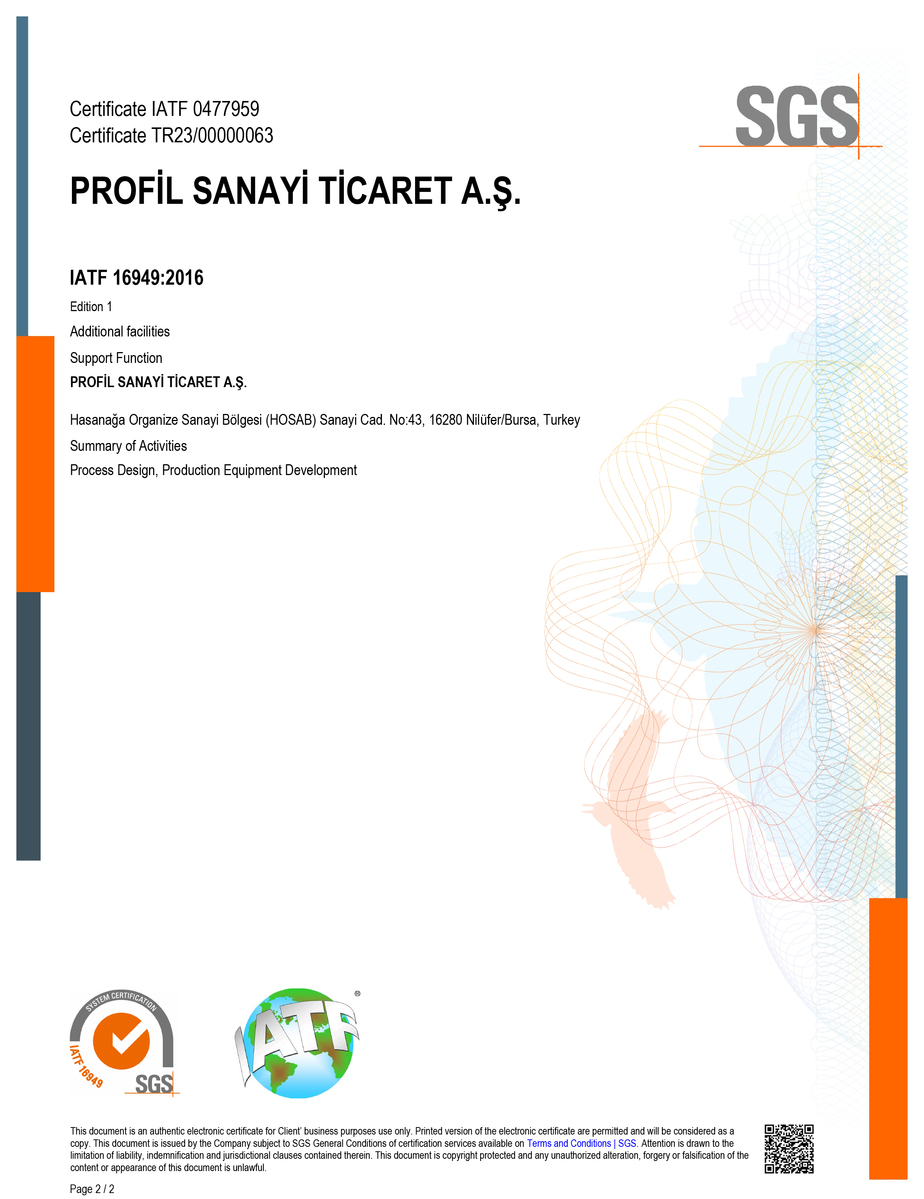 Profil Sanayi ve Ticaret A.Ş metal profil ve boru imalat ve ticareti için 1966’ da Bursa - Türkiye’ de kurulmuş olup, Tofaş Türk Otomobil Fabrikası A.Ş tarafından Türkiye’ deki ilk orijinal ekipman imalat (OEM) fabrikasının açılmasından kısa süre önce 1969’ da montaj hatlarının profillerinin ve 1972’ de sac pres kalıplarının tedariği için seçilmesi sonrasındaki 50 sene boyunca otomotiv sektörüne tam sistem tedarikçisi haline evrilmiştir.